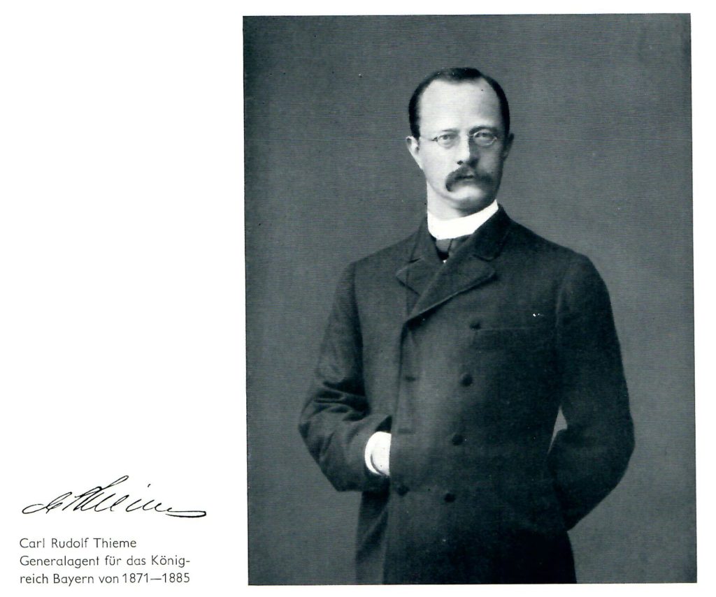 Carl von Thieme (er wurde 1914 in den Adelsstand erhoben) war Mitbegründer der Munich Re und der Allianz. Carl von Thieme wurde am 30. April 1844 in Erfurt geboren und starb am 10. Oktober 1924 in München